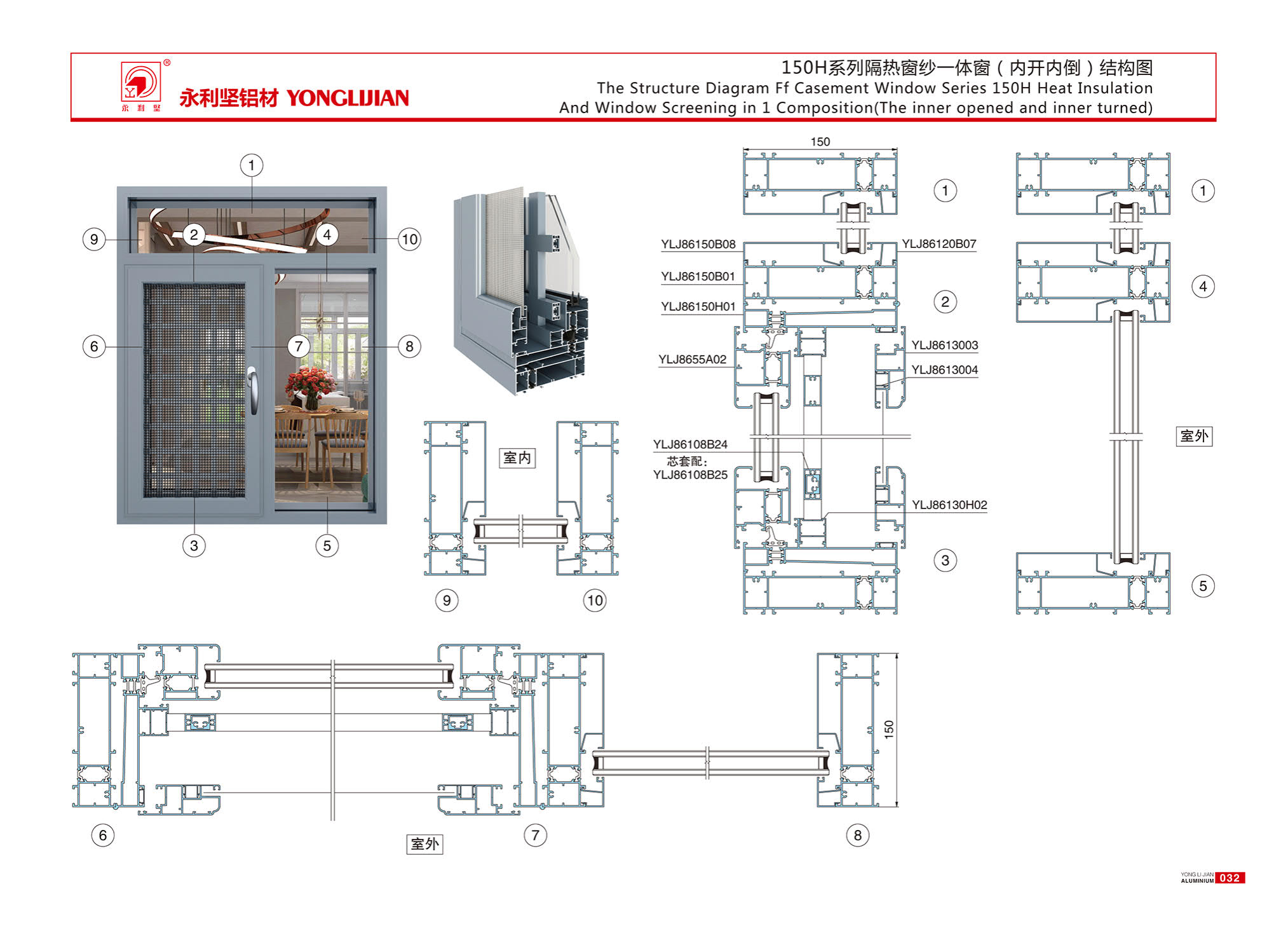 150H系列隔熱窗紗一體窗(內(nèi)開(kāi)內(nèi)倒)