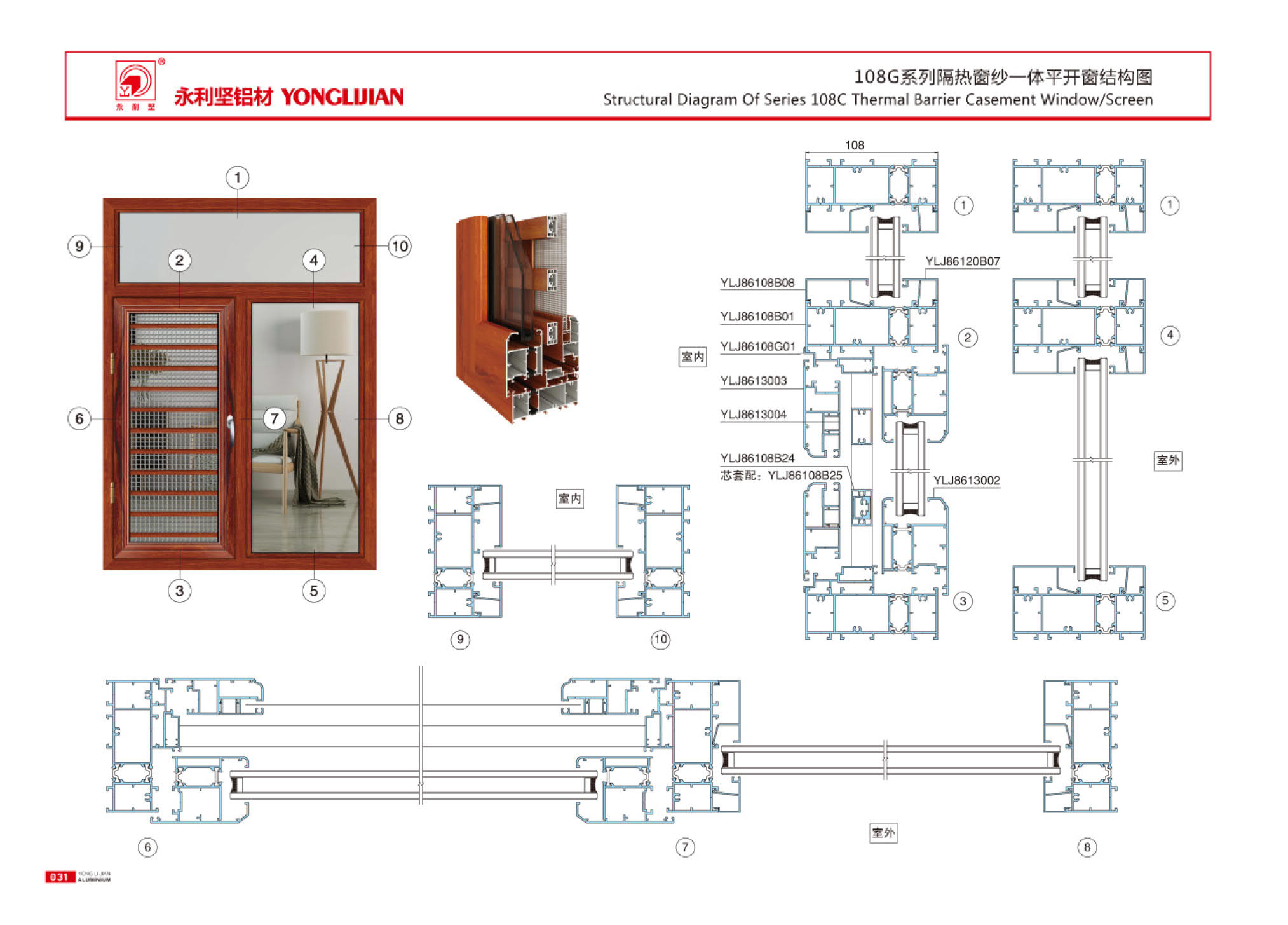 108G、120G、130G、150G系列隔熱窗紗一體平開窗系列