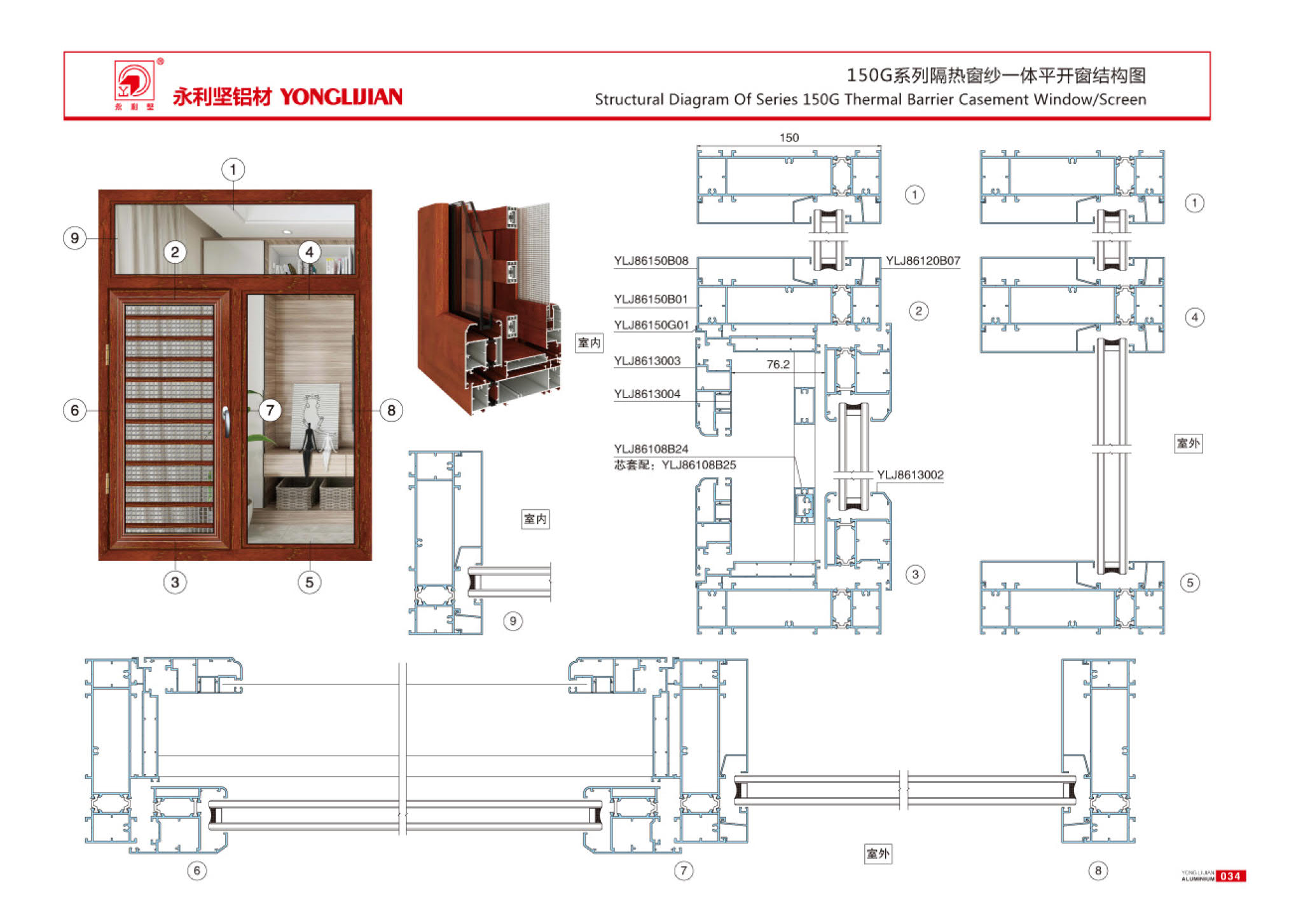 108G, 120G, 130G, 150G heat insulation window screen integrated casement window series