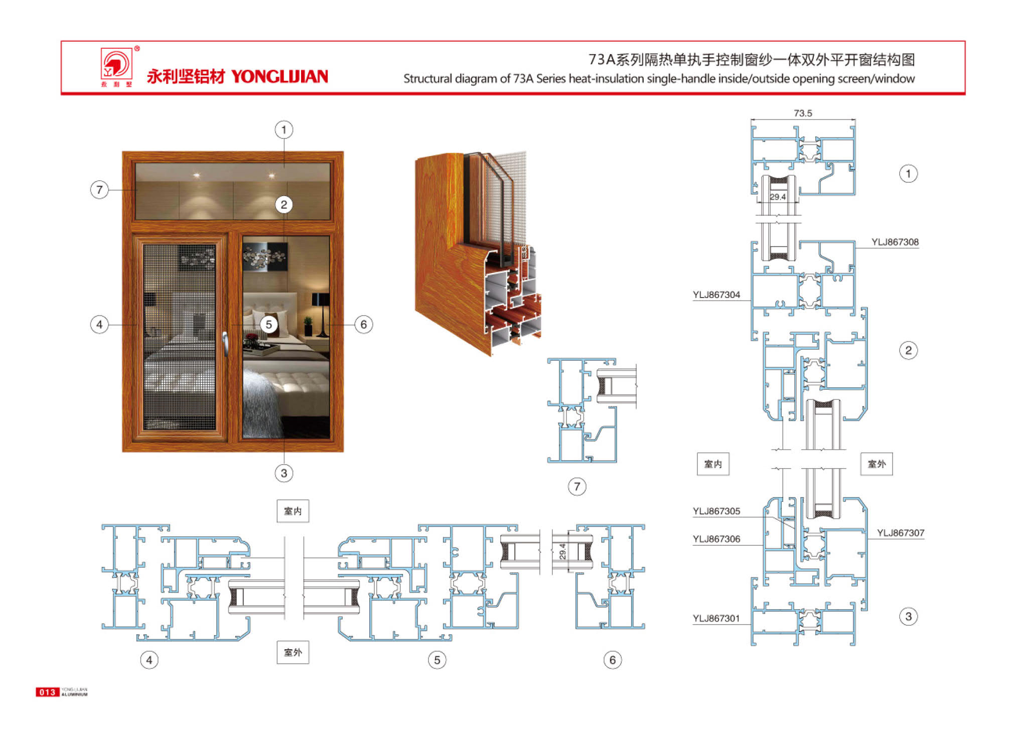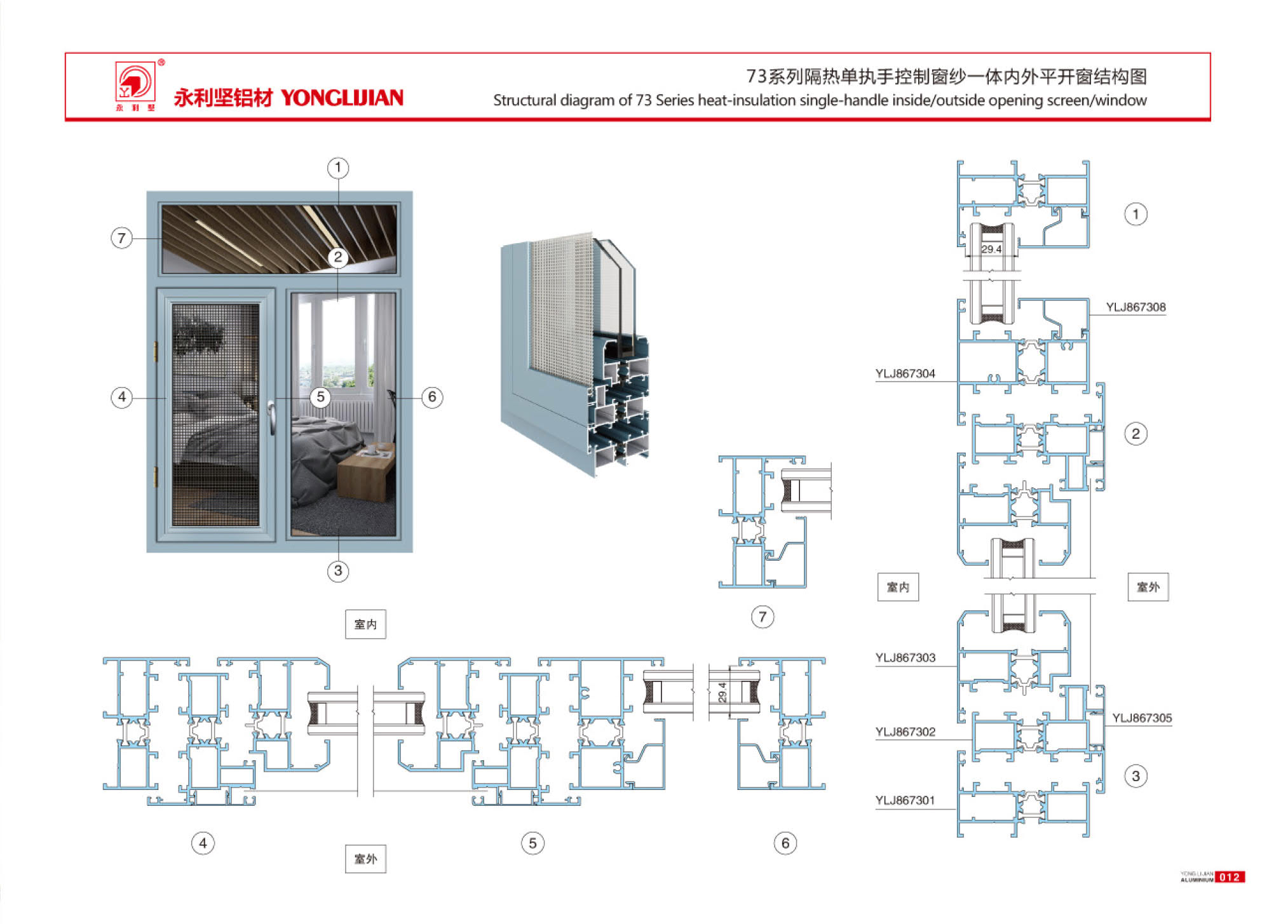 73/73A系列隔熱單執(zhí)手控制窗紗一體內(nèi)外平開窗系列