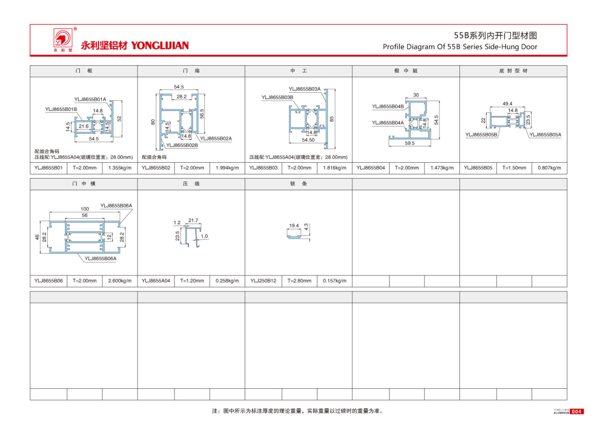55B系列內(nèi)平開門系列