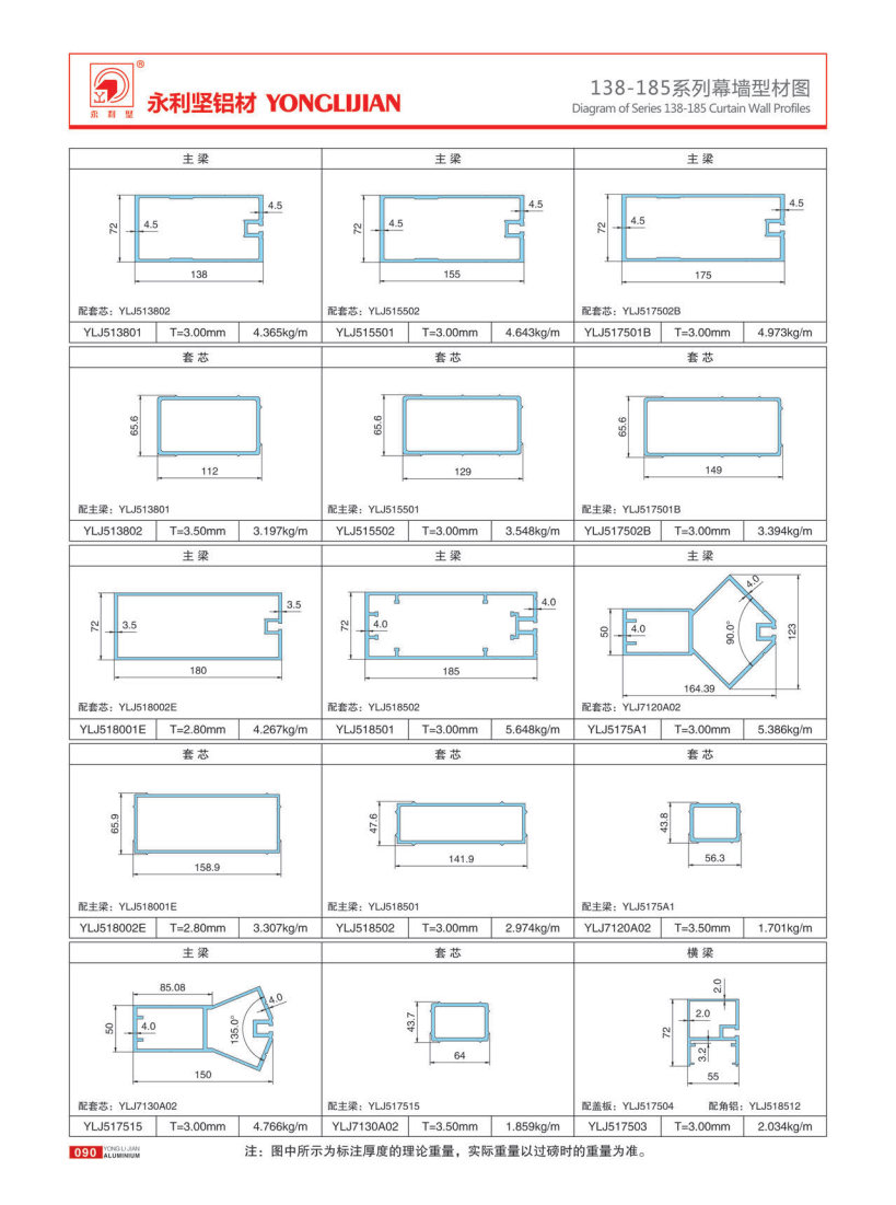 138-185 series hidden frame, semi hidden frame and open frame curtain wall