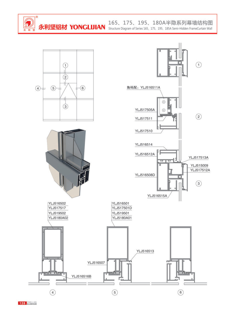 165、175、195、180A系列隱框、半隱框幕墻