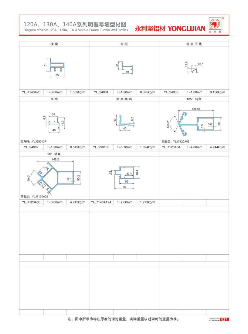 120A、130A、140A系列明框幕墻